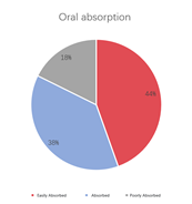 • 44% of compounds are highly orally absorbable, 38% are orally absorbable, and 18% are poorly orally absorbable.
