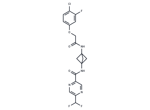 | Smiles | FC(F)c1cnc(cn1)C(=O)NC12CC(C1)(C2)NC(=O)COc1ccc(Cl)c(F)c1 |