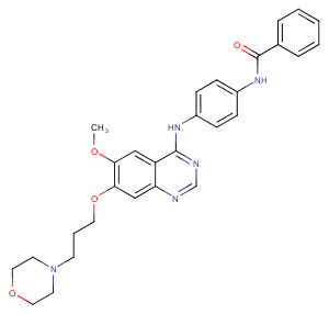 | Smiles | COc1cc2c(Nc3ccc(NC(=O)c4ccccc4)cc3)ncnc2cc1OCCCN1CCOCC1 |