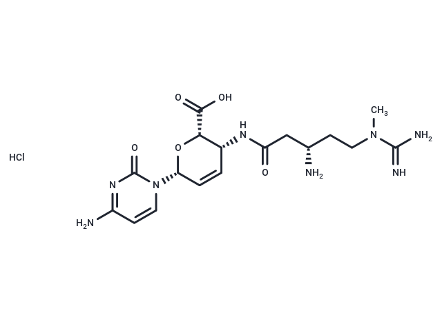 | Smiles | Cl.CN(CC[C@H](N)CC(=O)N[C@@H]1C=C[C@@H](O[C@@H]1C(O)=O)n1ccc(N)nc1=O)C(N)=N |