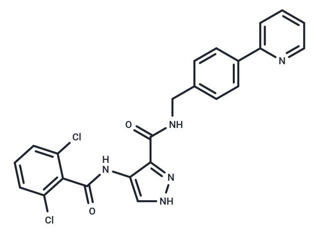 SmilesO=C(C1=NNC=C1NC(C2=C(Cl)C=CC=C2Cl)=O)NCC(C=C3)=CC=C3C4=CC=CC=N4