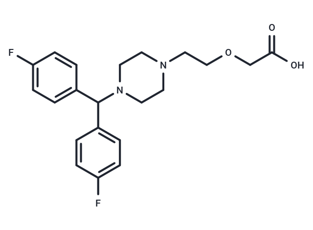 | Smiles | C(N1CCN(CCOCC(O)=O)CC1)(C2=CC=C(F)C=C2)C3=CC=C(F)C=C3 |
