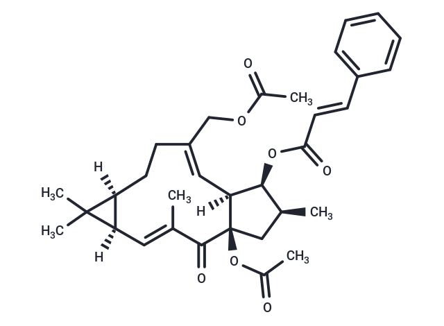 | Smiles | [H][C@]12CC\C(COC(C)=O)=C\[C@@]3([H])[C@@H](OC(=O)\C=C\c4ccccc4)[C@@H](C)C[C@]3(OC(C)=O)C(=O)\C(C)=C\[C@@]1([H])C2(C)C |