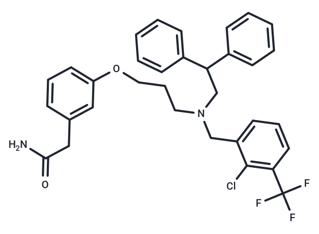 | Smiles | O=C(N)CC=1C=CC=C(OCCCN(CC2=CC=CC(=C2Cl)C(F)(F)F)CC(C=3C=CC=CC3)C=4C=CC=CC4)C1 |