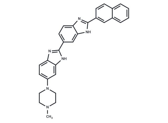 Hoechst 33258 analog 5 is an analog of Hoechst stains which are part of a family of blue fluorescent dyes used to stain DNA.