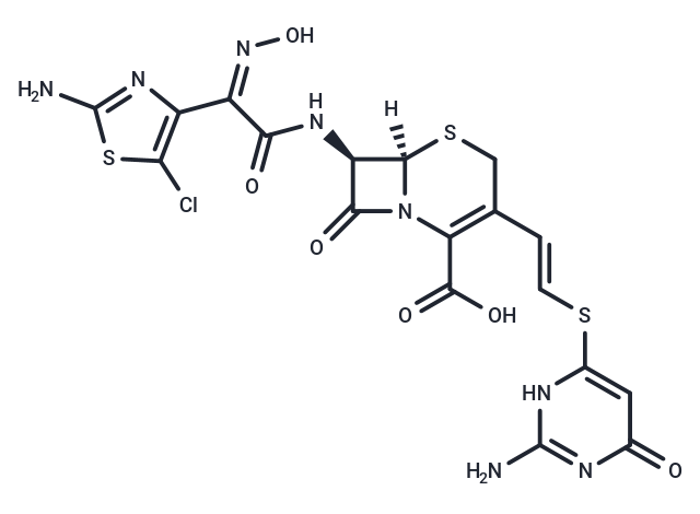 LB 11058 is a novel injectable cephalosporin featuring a C-3 pyridyl-substituted vinyl sulfide and a C-7 2-amino-5-chloro-1,3-thiazole group. This compound exhibits exceptional activity against Streptococcus pneumoniae and demonstrates similar efficacy against β-hemolytic streptococci. The inhibition pattern for LB 11058 with S. aureus is consistent, as all isolates are inhibited under this pattern.