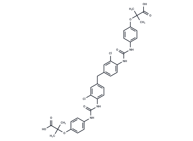 | Smiles | CC(C)(Oc1ccc(NC(=O)Nc2ccc(Cc3ccc(NC(=O)Nc4ccc(OC(C)(C)C(O)=O)cc4)c(Cl)c3)cc2Cl)cc1)C(O)=O |