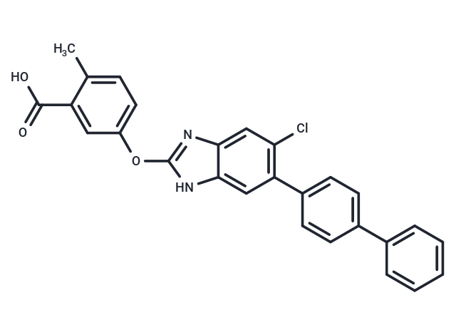 | Smiles | Cc1ccc(Oc2nc3cc(Cl)c(cc3[nH]2)-c2ccc(cc2)-c2ccccc2)cc1C(O)=O |