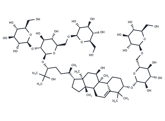 | Smiles | C[C@H](CC[C@@H](O[C@@H]1O[C@H](CO[C@@H]2O[C@H](CO)[C@@H](O)[C@H](O)[C@H]2O)[C@@H](O)[C@H](O)[C@H]1O[C@@H]1O[C@H](CO)[C@@H](O)[C@H](O)[C@H]1O)C(C)(C)O)[C@H]1CC[C@@]2(C)[C@@H]3CC=C4[C@@H](CC[C@H](O[C@@H]5O[C@H](CO[C@@H]6O[C@H](CO)[C@@H](O)[C@H](O)[C@H]6O)[C@@H](O)[C@H](O)[C@H]5O)C4(C)C)[C@]3(C)[C@H](O)C[C@]12C |