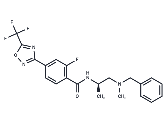 | Description | NT376 is a potent and selective inhibitor of class IIa Histone deacetylases (HDAC), exhibiting an IC50 value of 32 nM and demonstrating efficacy similar to NT160 (IC50 = 46 nM) in HT-29 cells. This compound is a promising candidate for research into various cancers and central nervous system (CNS) disorders, including Alzheimers and Huntingtons diseases. |