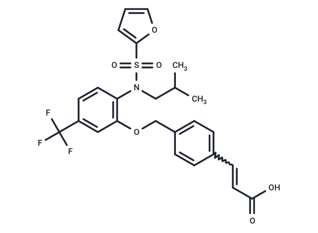| Smiles | N(S(=O)(=O)C1=CC=CO1)(CC(C)C)C2=C(OCC3=CC=C(C=CC(O)=O)C=C3)C=C(C(F)(F)F)C=C2 |
