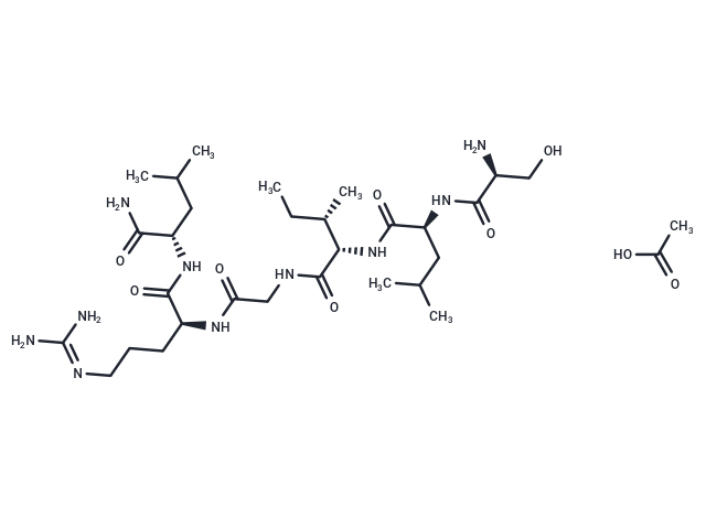 | Smiles | CC[C@H](C)[C@@H](C(=O)NCC(=O)N[C@@H](CCCN=C(N)N)C(=O)N[C@@H](CC(C)C)C(=O)N)NC(=O)[C@H](CC(C)C)NC(=O)[C@H](CO)N.CC(=O)O |
