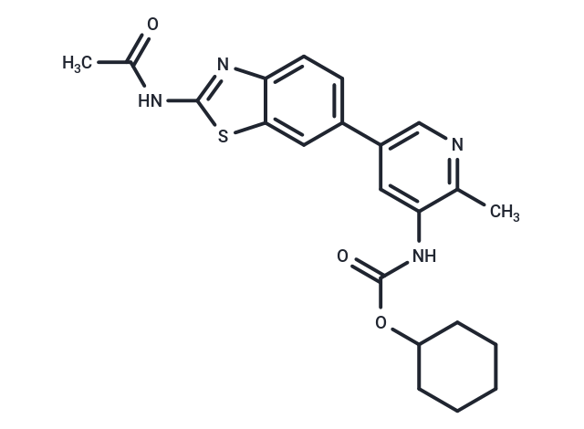 | Smiles | CC(=O)Nc1nc2ccc(cc2s1)-c1cnc(C)c(NC(=O)OC2CCCCC2)c1 |