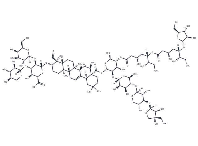 | Description | QS-21, an immunostimulatory saponin, is a potent vaccine adjuvant that stimulates both Th2 humoral and Th1 cell-mediated immune responses by interacting with antigen presenting cells (APCs) and T cells. Furthermore, QS-21 activates the NLRP3 inflammasome, leading to the release of cytokines IL-1β and IL-18, dependent on caspase-1. |
