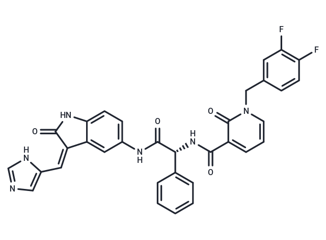 Preparation method for in vivo formula: Take 50 μL DMSOTargetMol | reagent main solution, add 300 μLPEG300TargetMol | reagent mix well and clarify, then add 50 more μL Tween 80, mix well and clarify, then add 600 more μLSaline/PBS/ddH2OTargetMol | reagent mix well and clarify