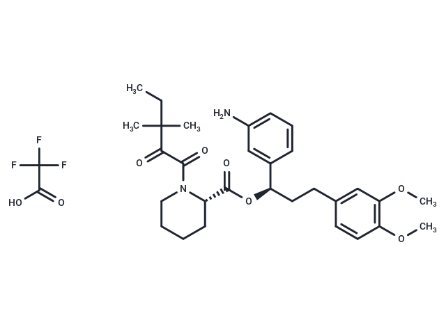 SLF TFA, a synthetic ligand for FK506-binding protein (FKBP), exhibits affinity toward FKBP51 with a value of 3.1 μM and demonstrates an IC50 of 2.6 μM for FKBP12. This compound is utilized in the synthesis of PROTAC [1] [2] [3].