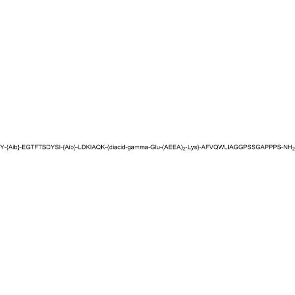 | Sequence Short | Y-{Aib}-EGTFTSDYSI-{Aib}-LDKIAQ-{C20 diacid-gamma-Glu-(AEEA)2-Lys}-AFVQWLIAGGPSSGAPPPS-NH2 |