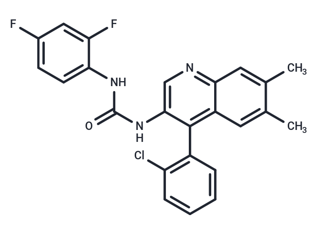 | Smiles | O=C(NC1=CC=C(F)C=C1F)NC2=CN=C3C=C(C(=CC3=C2C=4C=CC=CC4Cl)C)C |