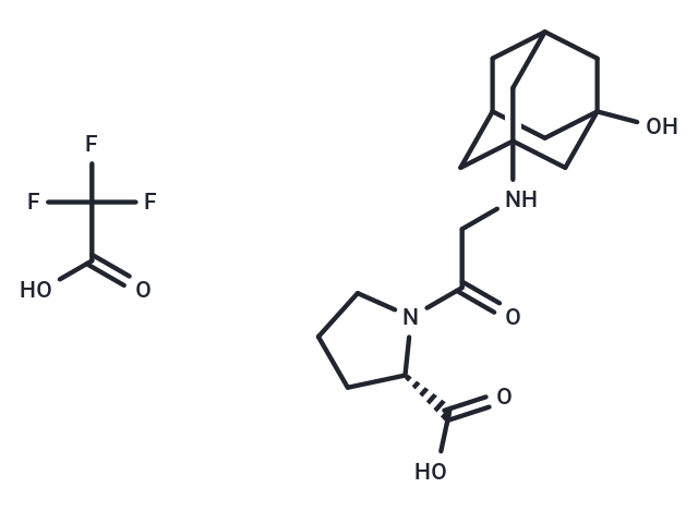 | Description | Vildagliptin carboxylic acid metabolite is the major metabolite of the dipeptidyl peptidase 4 (DPP-4) inhibitor vildagliptin in humans. Vildagliptin carboxylic acid metabolite has an IC50 value of 477 μM for DPP-4 in human Caco-2 cells. It is formed from hydrolysis of the cyano group on vildagliptin. |
