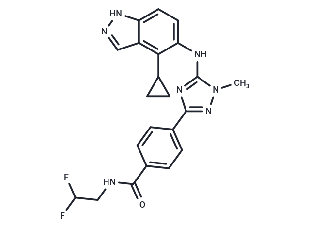| Smiles | O=C(NCC(F)F)C=1C=CC(=CC1)C=2N=C(NC3=CC=C4NN=CC4=C3C5CC5)N(N2)C |