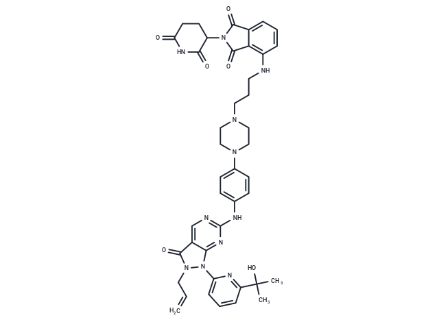 | Smiles | C(C=C)N1N(C=2C(C1=O)=CN=C(NC3=CC=C(C=C3)N4CCN(CCCNC5=C6C(C(=O)N(C6=O)C7C(=O)NC(=O)CC7)=CC=C5)CC4)N2)C=8N=C(C(C)(C)O)C=CC8 |