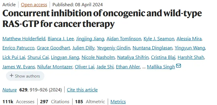 [2] Holderfield M, Lee BJ, Jiang J, et al. Concurrent inhibition of oncogenic and wild-type RAS-GTP for cancer therapy. Nature. 2024 May;629(8013):919-926. doi: 10.1038/s41586-024-07205-6. Epub 2024 Apr 8. PMID: 38589574; PMCID: PMC11111408.