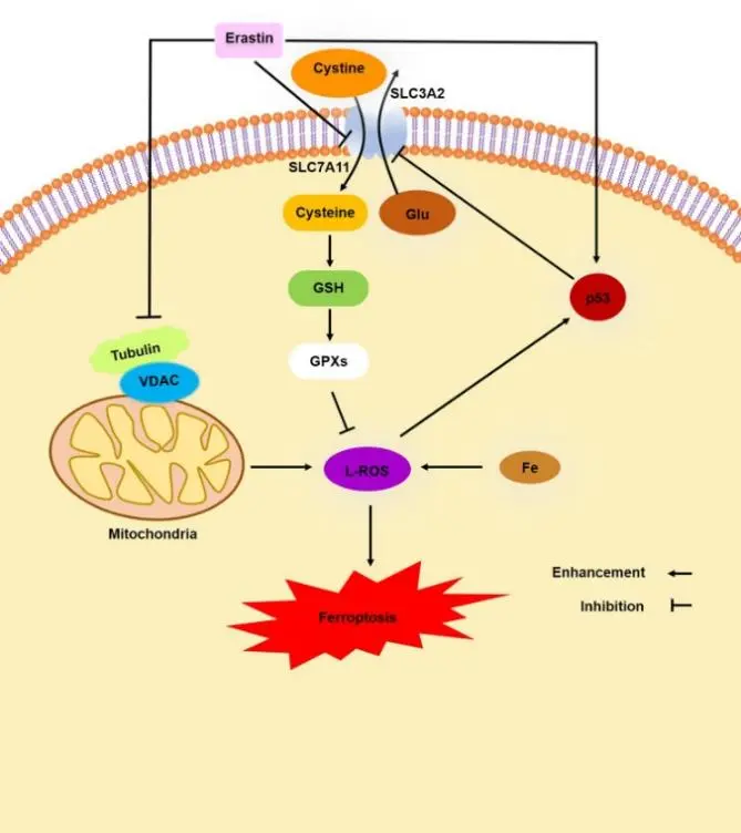 Erastin induces ferroptosis by altering the permeability of VDAC [1]