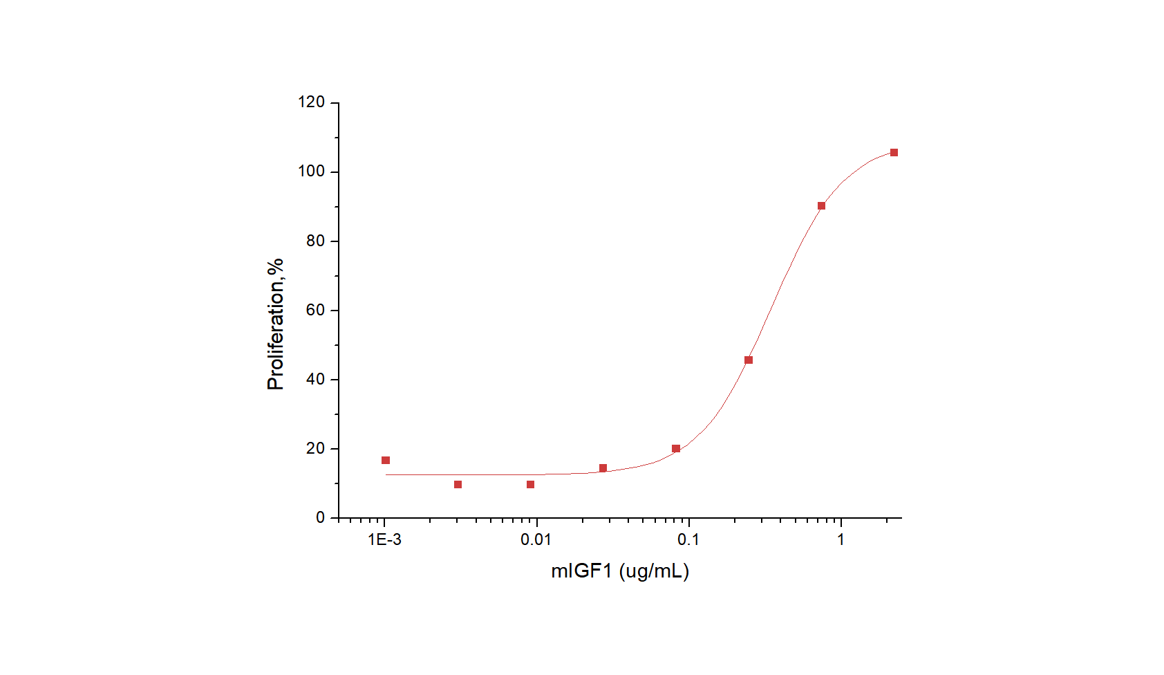 IGF1/IGF-I Protein, Mouse, Recombinant is expressed in yeast. The predicted molecular weight is 7.7 kDa and the accession number is E9PU89.