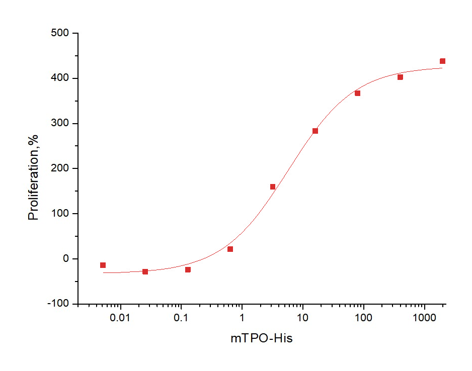 Thrombopoietin Protein, Mouse, Recombinant (His) is expressed in HEK293 mammalian cells with His tag. The predicted molecular weight is 37 kDa and the accession number is P40226-1.